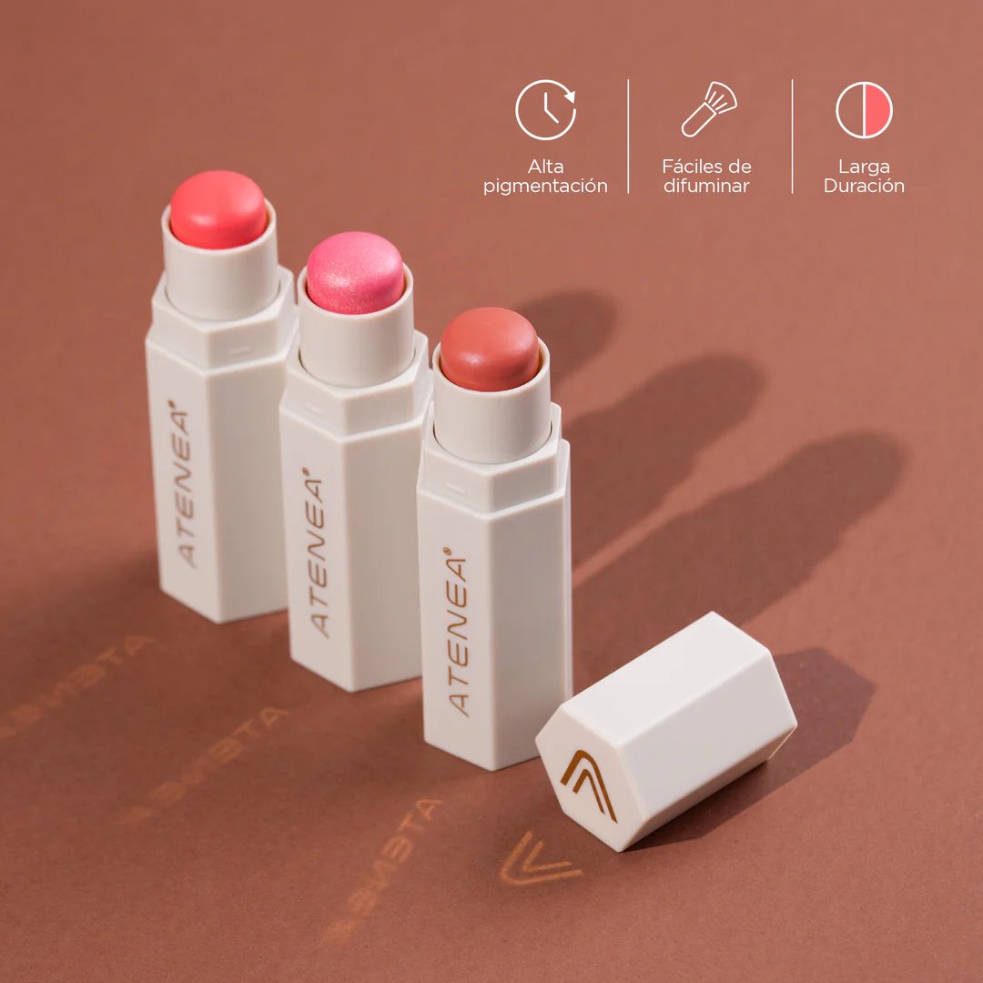 Los stick de Atenea Collection tienen textura cremosa, con fácil difuminación y de alta pigmentación, por lo que te recomendamos ir construyendo la tonalidad que deseas. El rubor en este caso aporta color a tu rostro, también puedes usarlo como sombra y labial, su tamaño es muy práctico para llevar en la cosmetiquera.